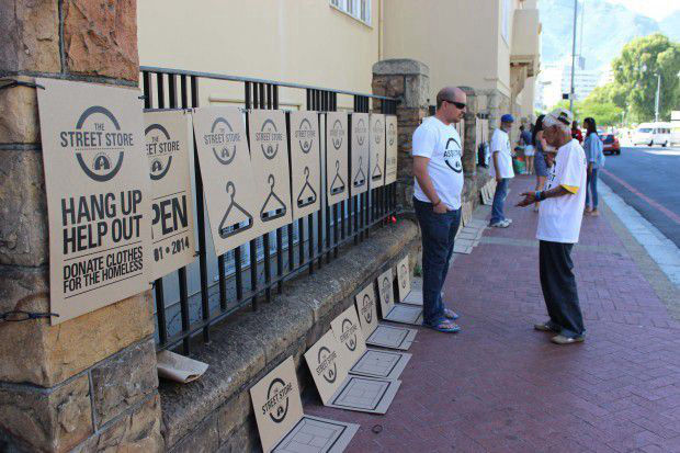 Max Pazar和Kayli Levitan于今年1月共同创办了The Street Store,他们在街头摆一些纸板,放一些衣物,供给那些无家可归的人。这项活动最早是从南非的开普敦开始,现在从巴西到比利时,很多地方都可以见到他们的身影。由于这些东西并不是打包好的直接赠予,而是人们有自己选择的权利,这让那些接受帮助的人觉得得到了尊重,保持了自尊,因此这种方式大大提高了助人的成功率。
