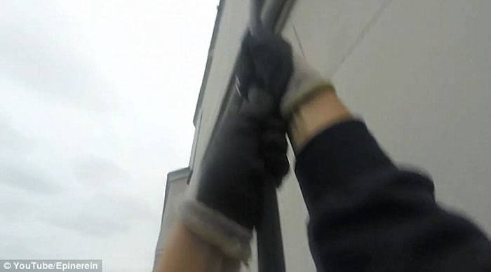 这名胆大的“蜘蛛人”约瑟夫(Joseph)刚巧拍到自己堕楼一幕,片中可以听到他不断喘气,靠墙找休息的地方,惟不成功。他苦苦支撑,手执墙外的电缆,未几失去平衡坠楼,旁边的友人目击过程,试图伸出援手。