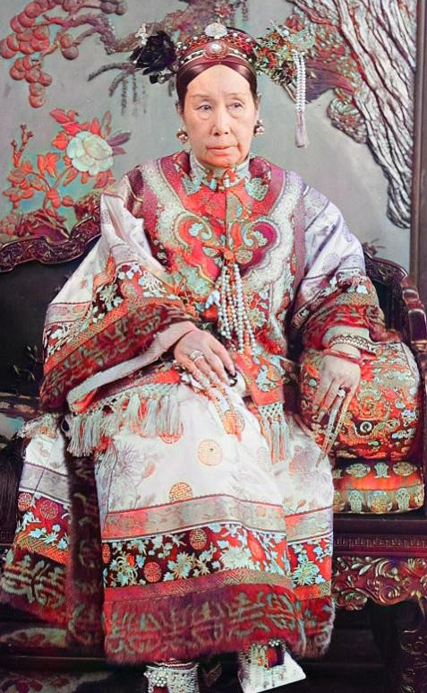 慈禧就这样去世了,宫女为她穿上刺有龙的图案的长袍寿衣,她和光绪皇帝的遗体从西苑移到了紫禁城,一路上有大臣跪着,遗体被分别安放在不同的宫殿里。